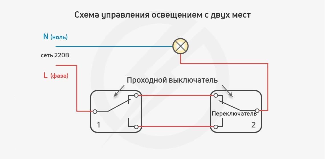 Схема управления освещением из двух мест