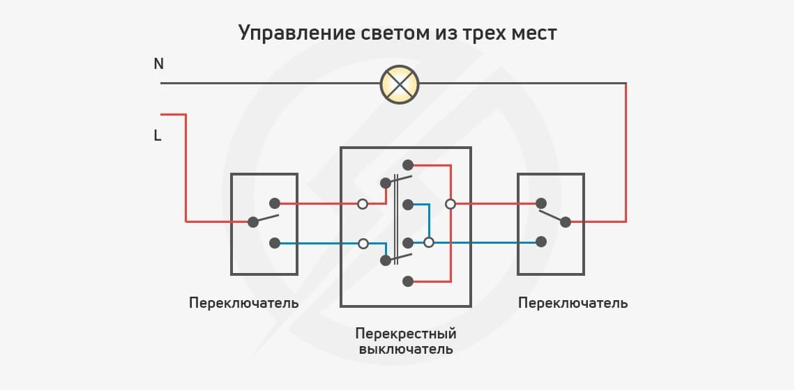 Схема управления освещением из трех мест