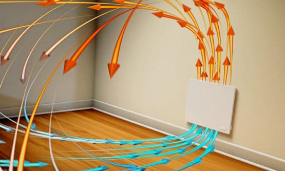 Ответ на вопрос, что такое электроконвектор, прост. Это прибор, обеспечивающий естественную циркуляцию воздушных масс за счёт разницы в температуре. Тёплые потоки устремляются вверх, а уже отдавшие тепловую энергию опускаются книзу. Таким образом создаётся естественное перемещение и перемешивание воздуха, гарантирующее равномерность прогревания комнаты. Электрический конвектор для отопления позволяет создать простую, сравнительно малозатратную систему теплоснабжения дома. Приборы можно подключать и к общей сети, и к аккумуляторам.
