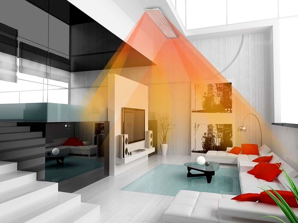 Инфракрасные обогреватели для отопления можно устанавливать на стенах, потолках, а также использовать приборы в виде ширм или перегородок. Площадь нагрева по сравнению с другими электроприборами увеличена — а значит, комната прогревается быстрее. ИК-панели хорошо сочетаются с отопительными котлами — например, первые можно включать весной, ранним летом и осенью, когда ещё не пришло время для задействования основного отопительного контура.